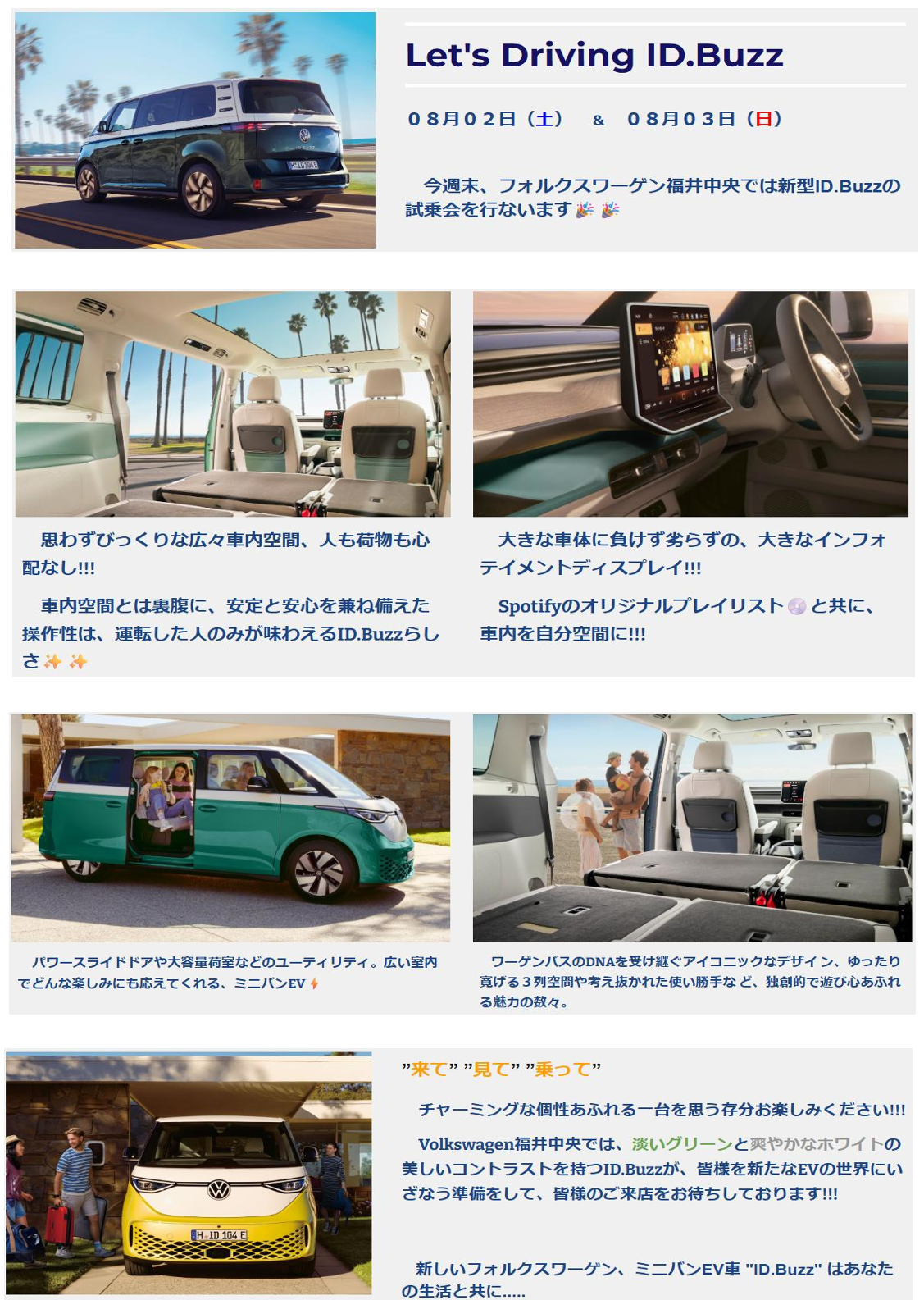 今週末、フォルクスワーゲン福井中央では新型ID.Buzzの試乗会を実施致します!